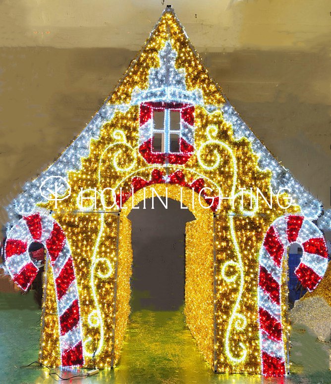 3D LED Gingerbread House Candy Cane Outdoor Motif Decorative Light HL-M-205