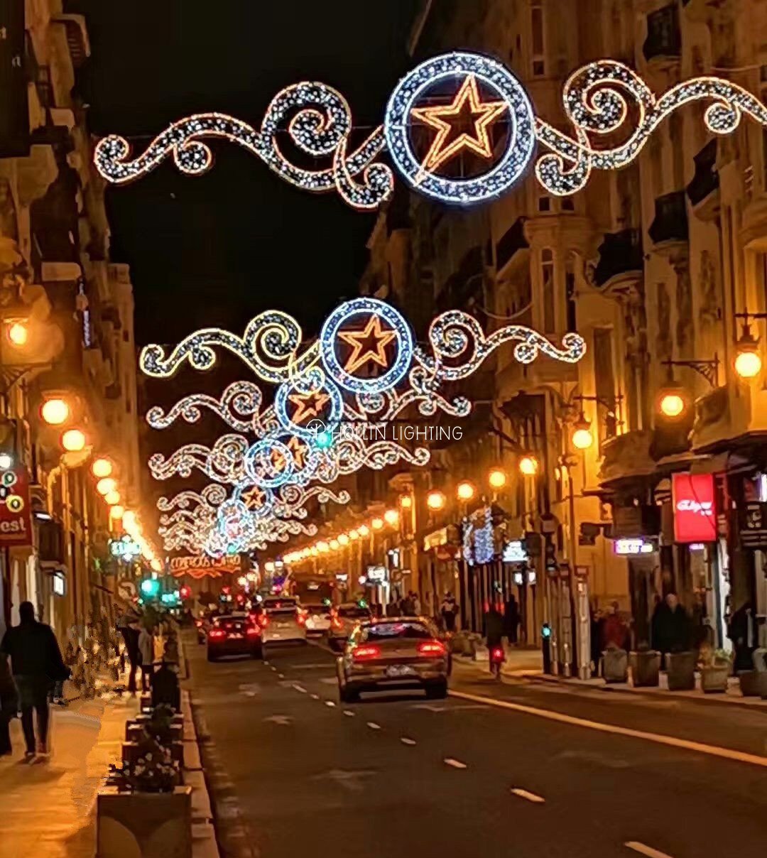 LED pole street motif lights are easy to decorate, they can hang on the poles or through other methods.